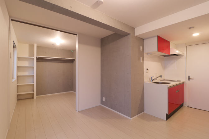 商店街に近く、生活環境も良好な立地に、タイルや各色塗装、RC打ち放しなど、デザイナーによる感性豊かなファサードデザインのマンションが誕生する。